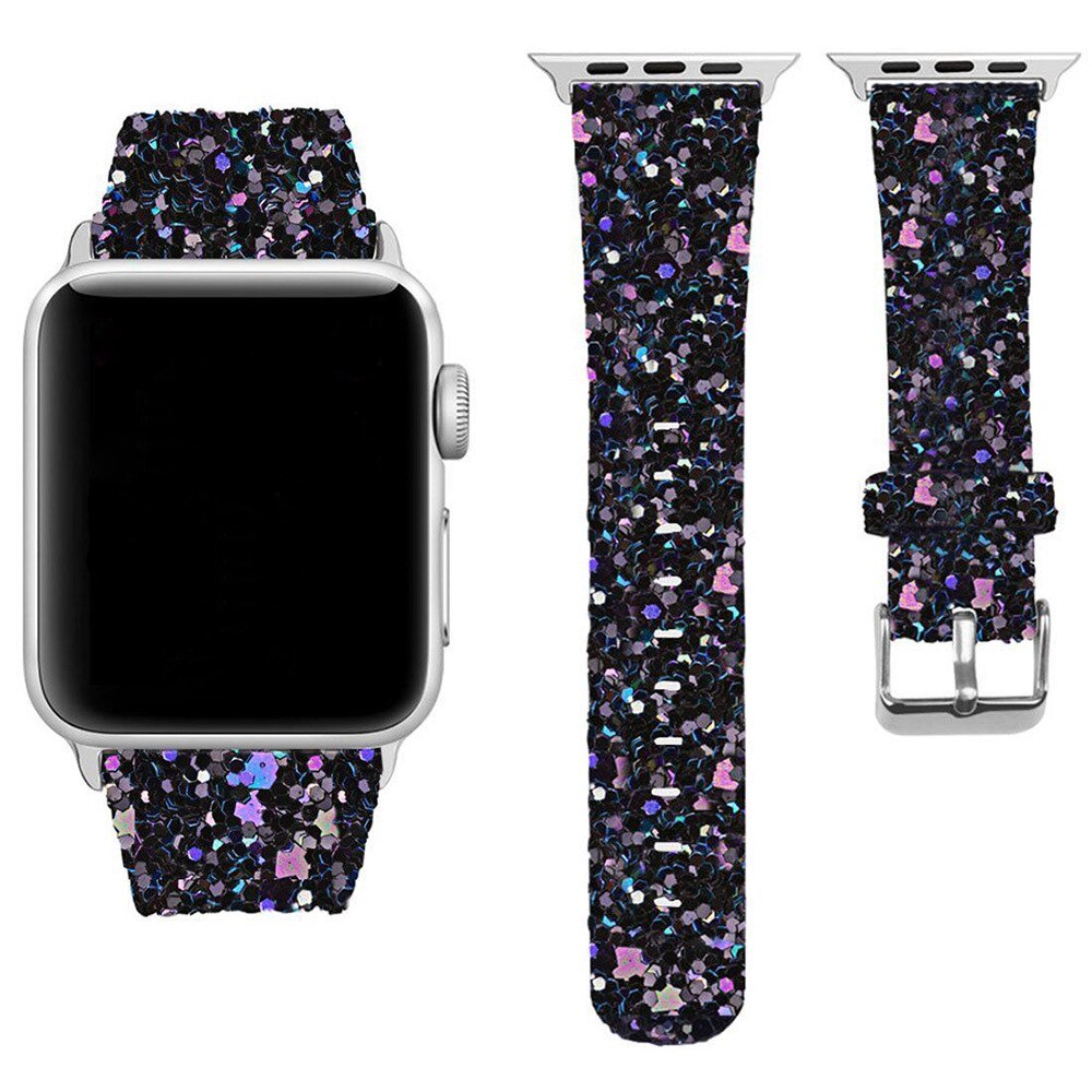 3pcs Leather Band for Apple Watch Series 6 SE 5/4/3 38mm 40mm 42mm 44mm Bling Strap for iWatch Wrist Bracelet Bright Shine Strap