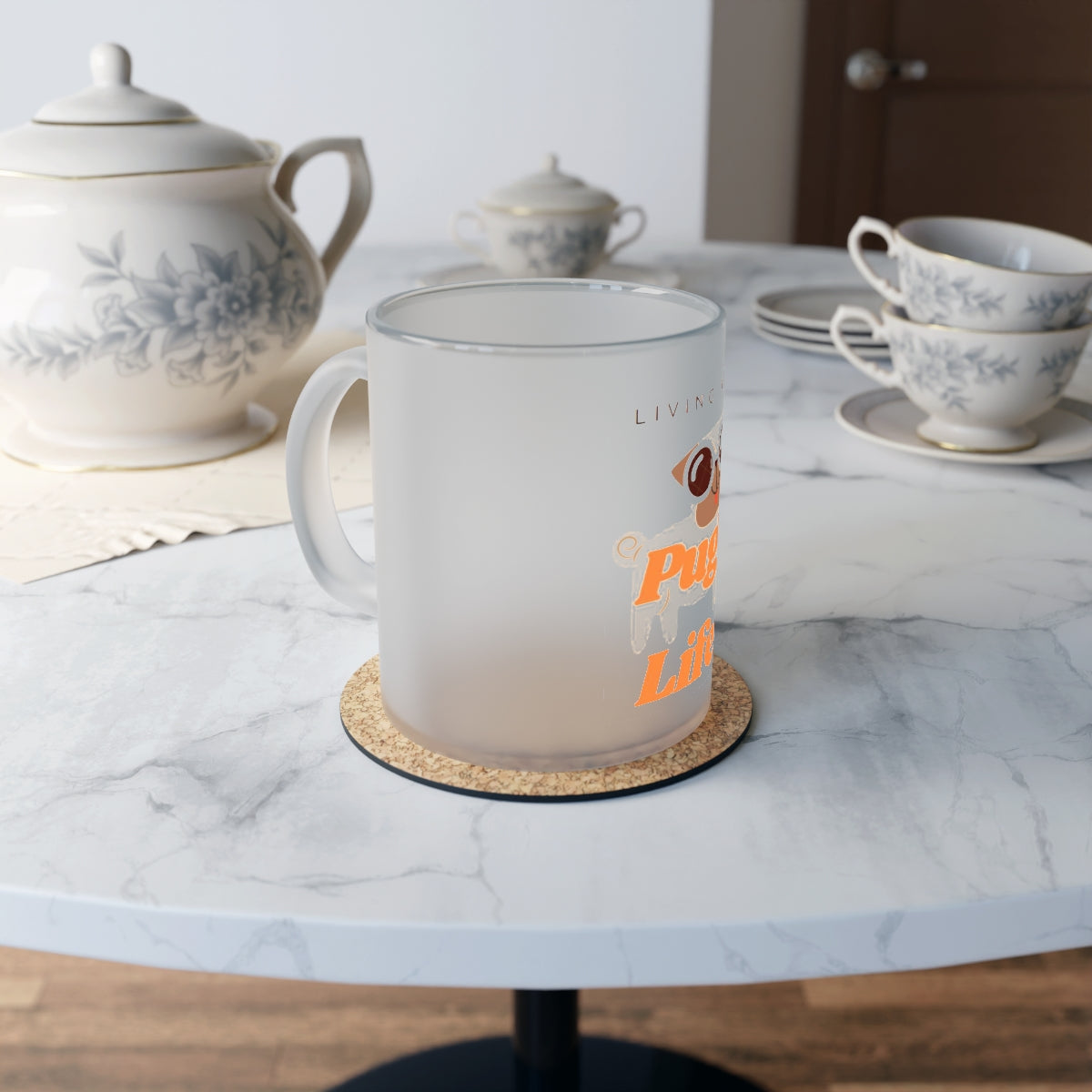 ' Living The PUG LIFE " Frosted Glass Mug Birthday Gift Holiday Gifts Pets Fur Momma Dog Lover
