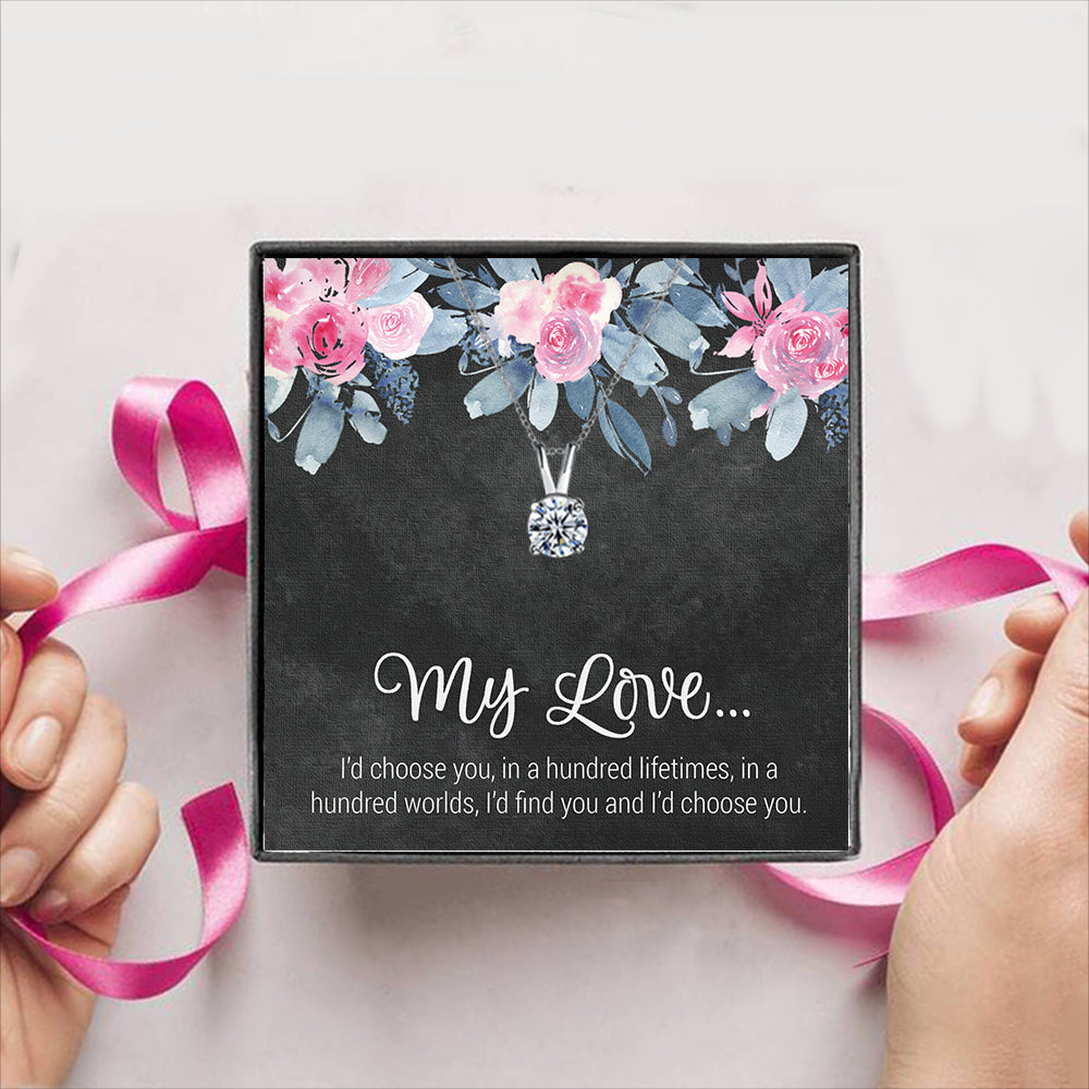 This exquisite "My Love" Gift Box pendant necklace is a must-have for anyone who loves to add a touch of sophistication to their outfit. It adds a unique touch, making it perfect for any occasion. The necklace is ideal for anyone looking for a piece of fashion jewelry that is both stylish and elegant.