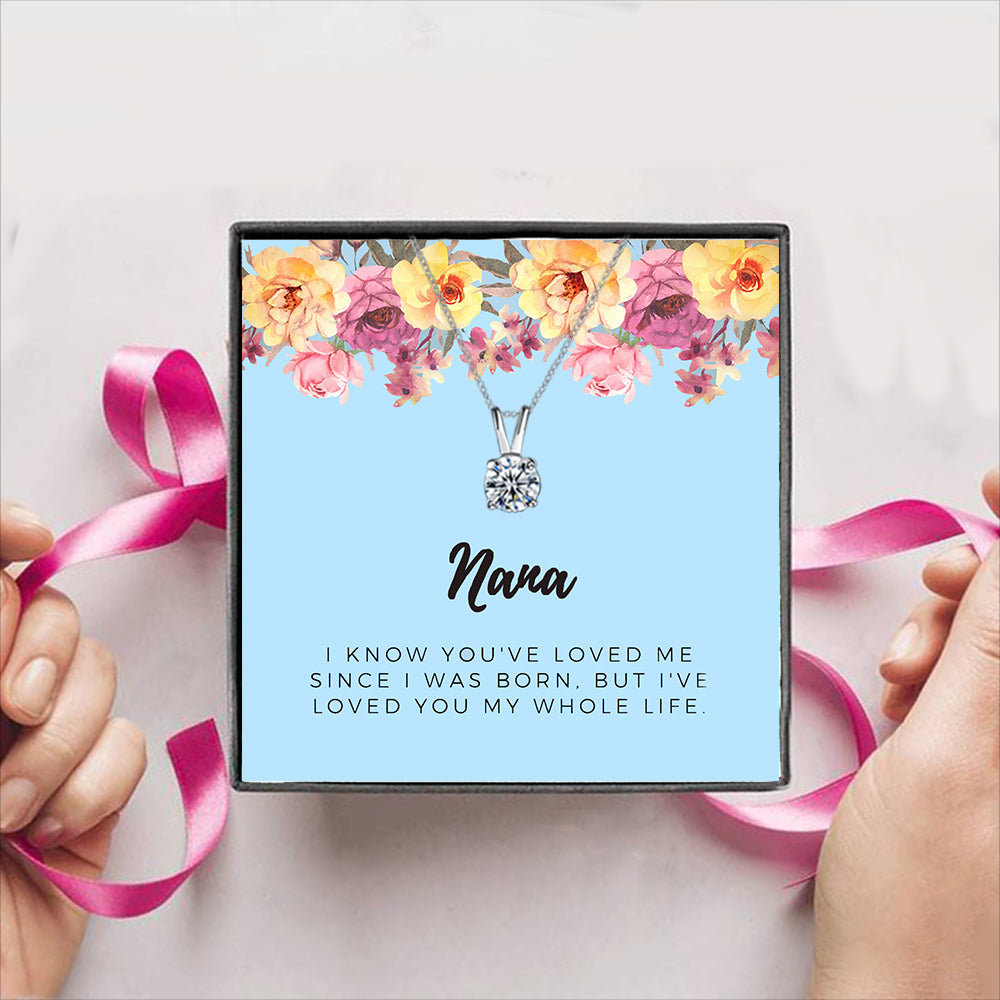 This exquisite "Nana" Gift Box Pendant Necklace is a must-have for anyone who loves to add a touch of sophistication to their outfit. It adds a unique touch, making it perfect for any occasion. The necklace is ideal for anyone looking for a piece of fashion jewelry that is both stylish and elegant.