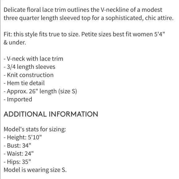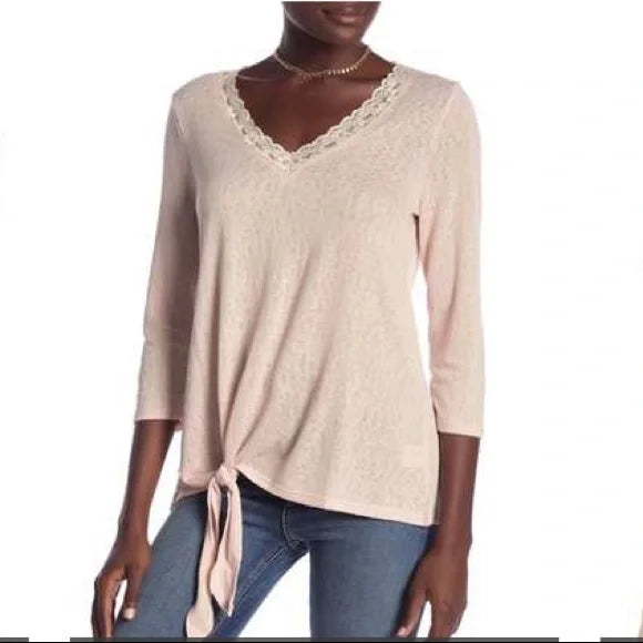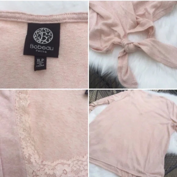 NWOT Brand New Bobeau lace trim long sleeve cream top. With a knot tie. Size petite XL.