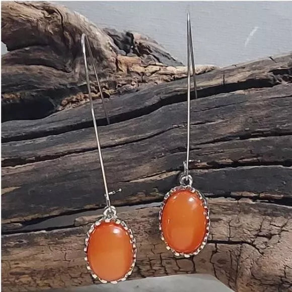 New E2198 Orange Cabochon Drop Earrings. Women's Fashion Accessories.