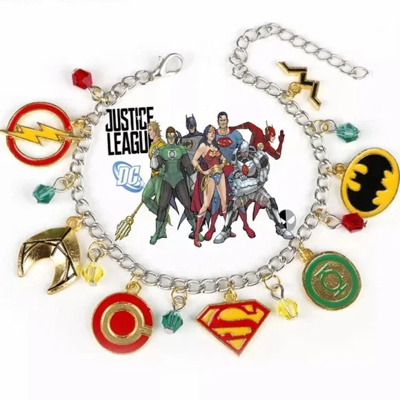 NWT BRAND NEW JUSTICE LEAGUE DC Comics CHARMS bracelet. 11 inches long.