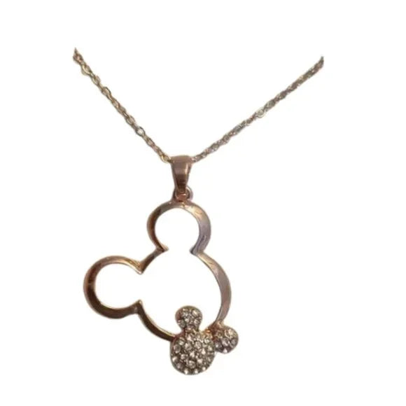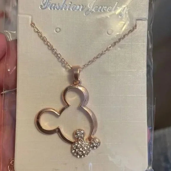 New Mickey Mouse Pendant Necklace Rose Gold Color. Fashion Jewelry