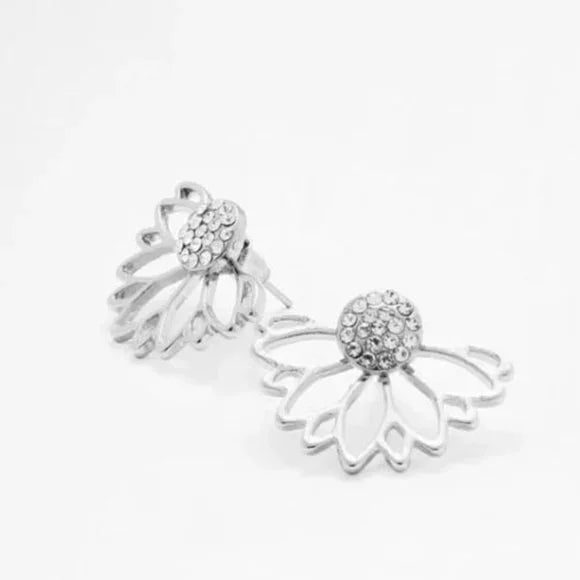 New Silver Toned Floral Hanging Lotus Earrings. Women's Fashion Jewelry.