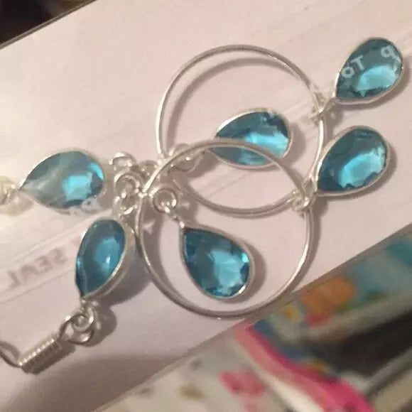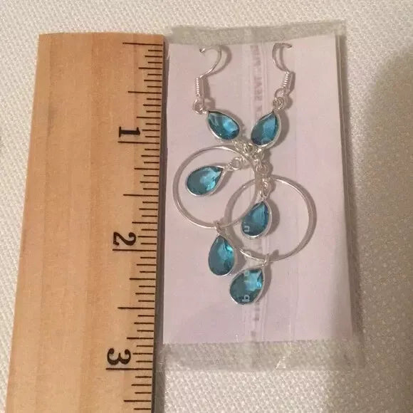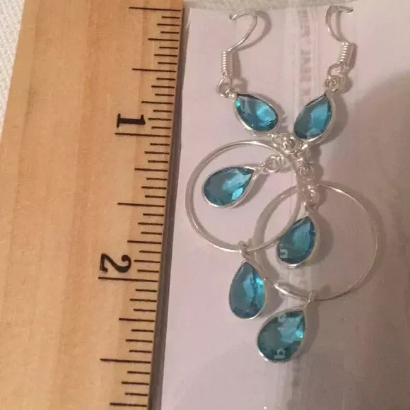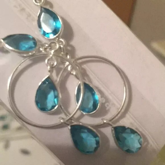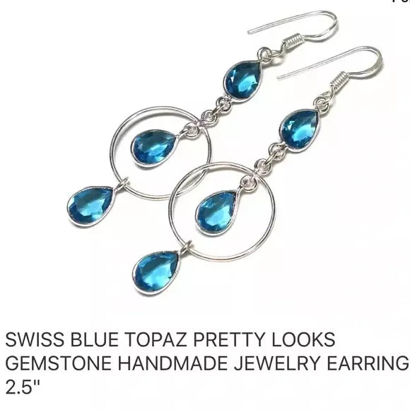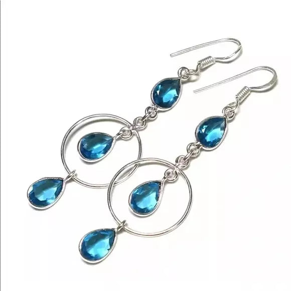 New very pretty long dangling blue Swiss topaz gemstone 💎 earrings. Women's Ladies Fashion Jewelry.