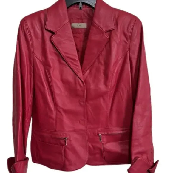 NWOT Red PU Leather Jacket Size Medium Winter Fall season Women's Ladies