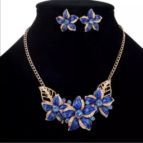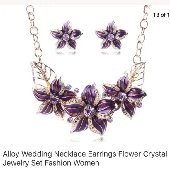NWT Brand New very pretty Austrian floral flower 🌺 necklace earrings set. Choose the color purple blue-white.
