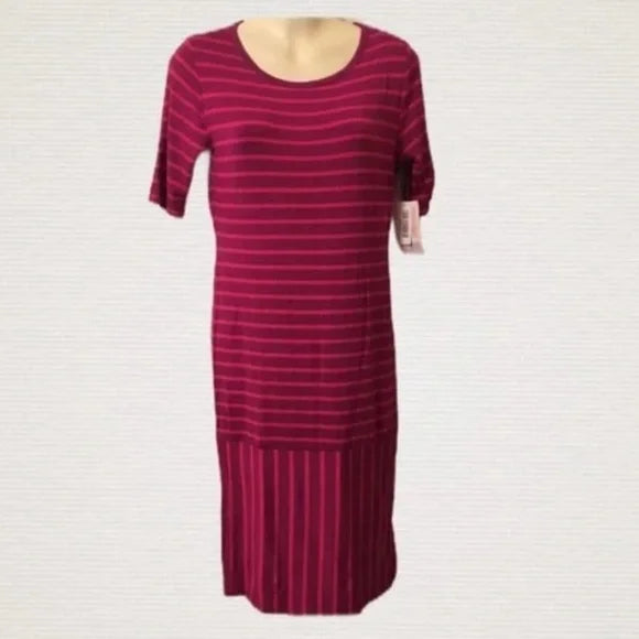 Size small Julia dress NWT pink and purple horizontal stripes and then vertical stripes on the bottom pit to pit is 16in