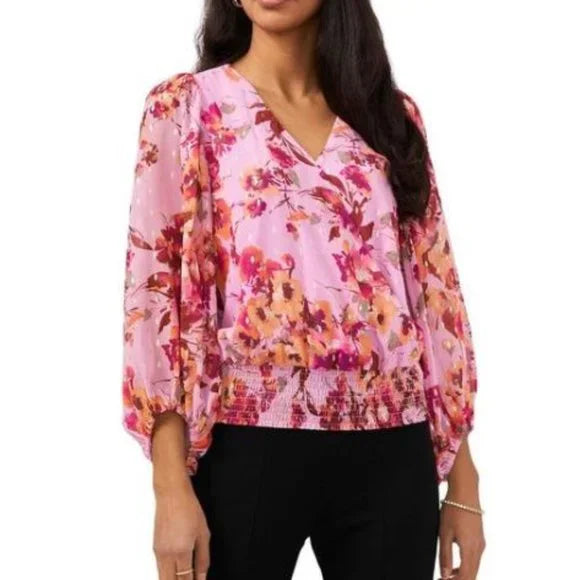 NWT MSK Women's Purple Metallic Floral Print Blouse Shirt Petite XL.