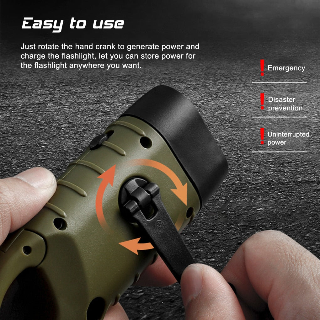 Easy to use: Just rotate the hand crank to generate power and charge the flashlight, letting you can store power for the flashlight anywhere you want.