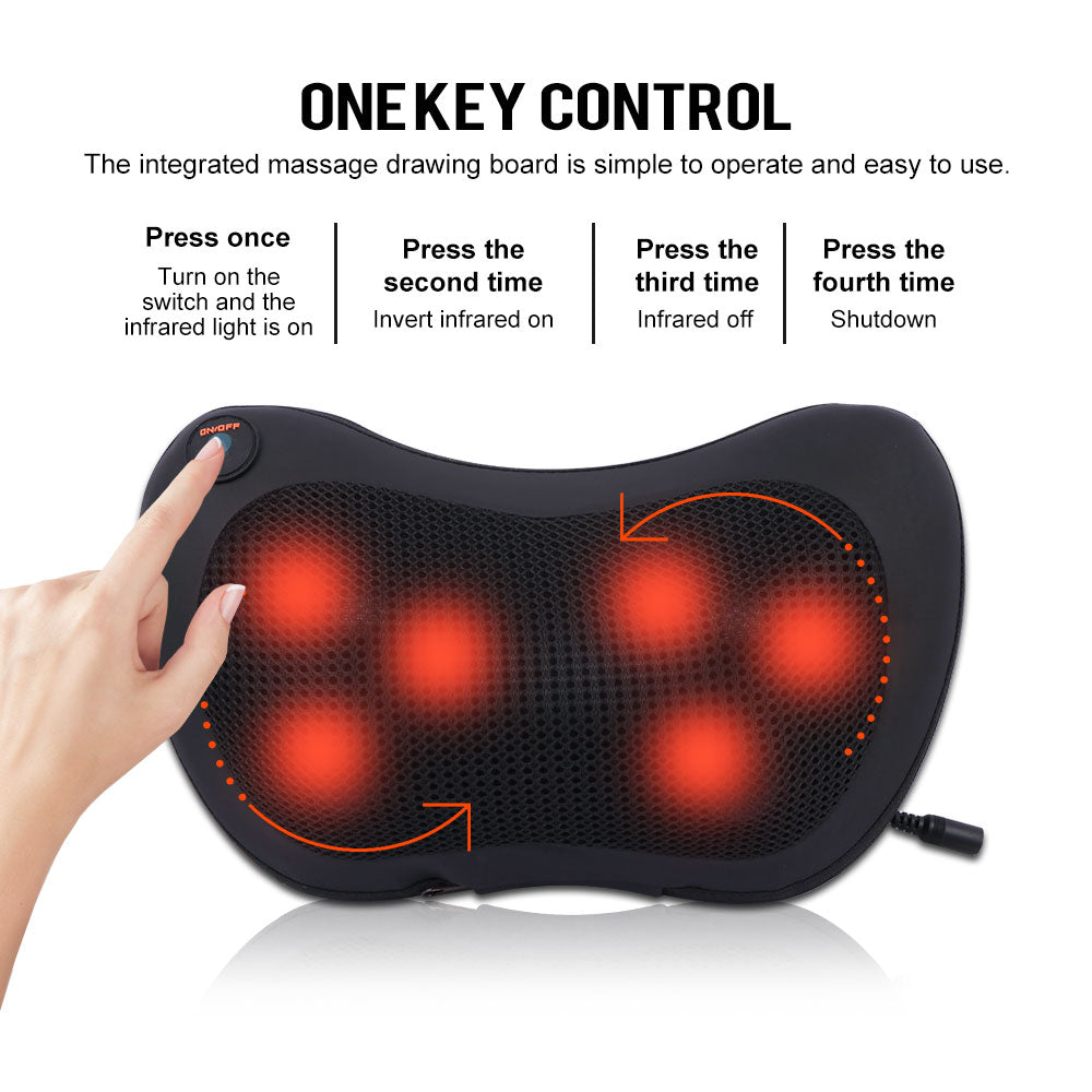 Forward rotation is switched automatically. Massage pillows use the latest features, massage head condensed infrared, hyperthermia, magnetic therapy, and vibration massage four functions. With a step-less speed regulation function, you can choose fast or slow at will. Key control is simple and convenient. Suitable for both car or home usage. Designed to massage acupuncture points in the neck High-quality motor and overheating protection. Great for neck relaxation, back-waist body massage, and deep kneading.