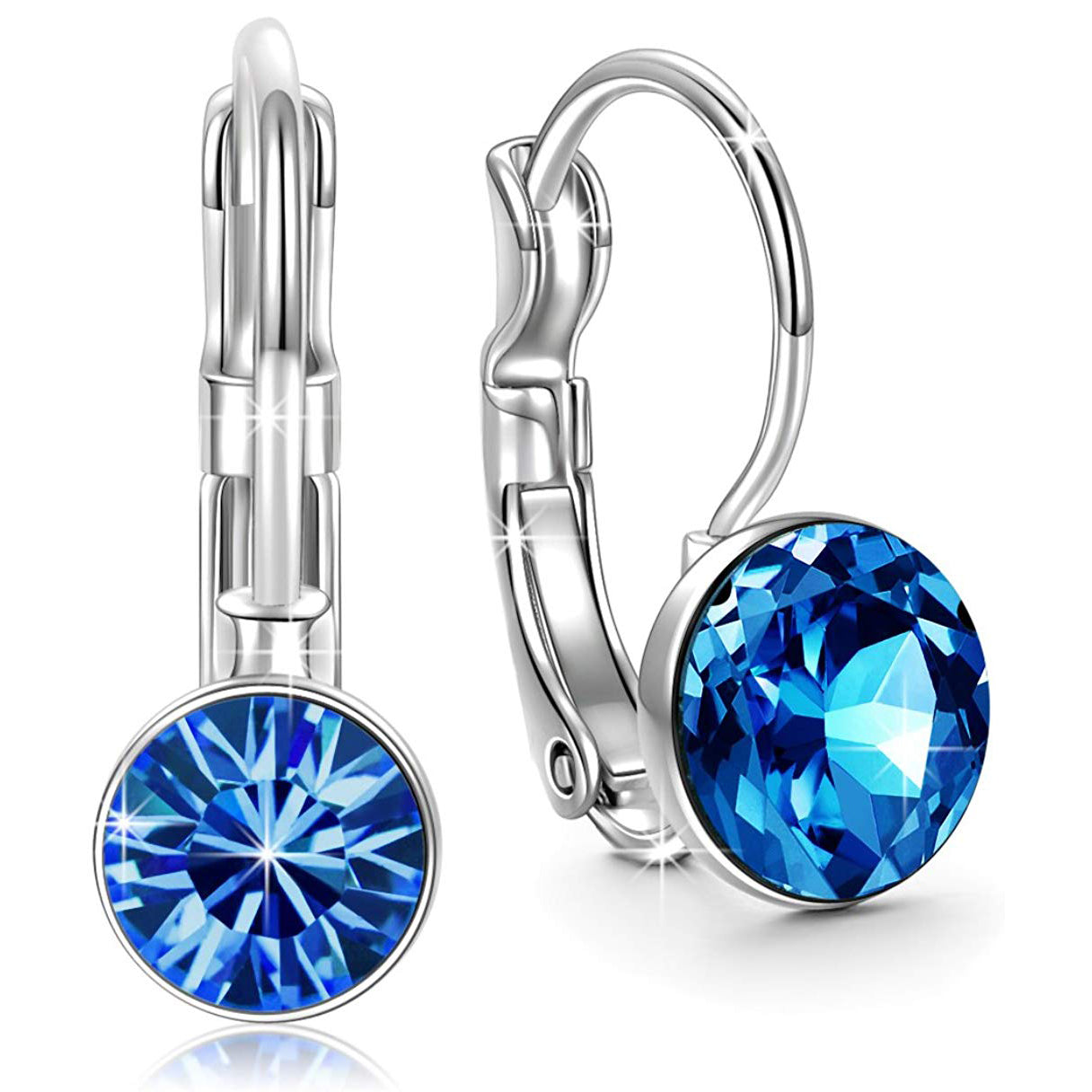 Creation Method: Lab Created Guaranteed to Retain its Color and Shine Sapphire Mini Baby Leverback 0.8" Earring in 18K White Gold Plated