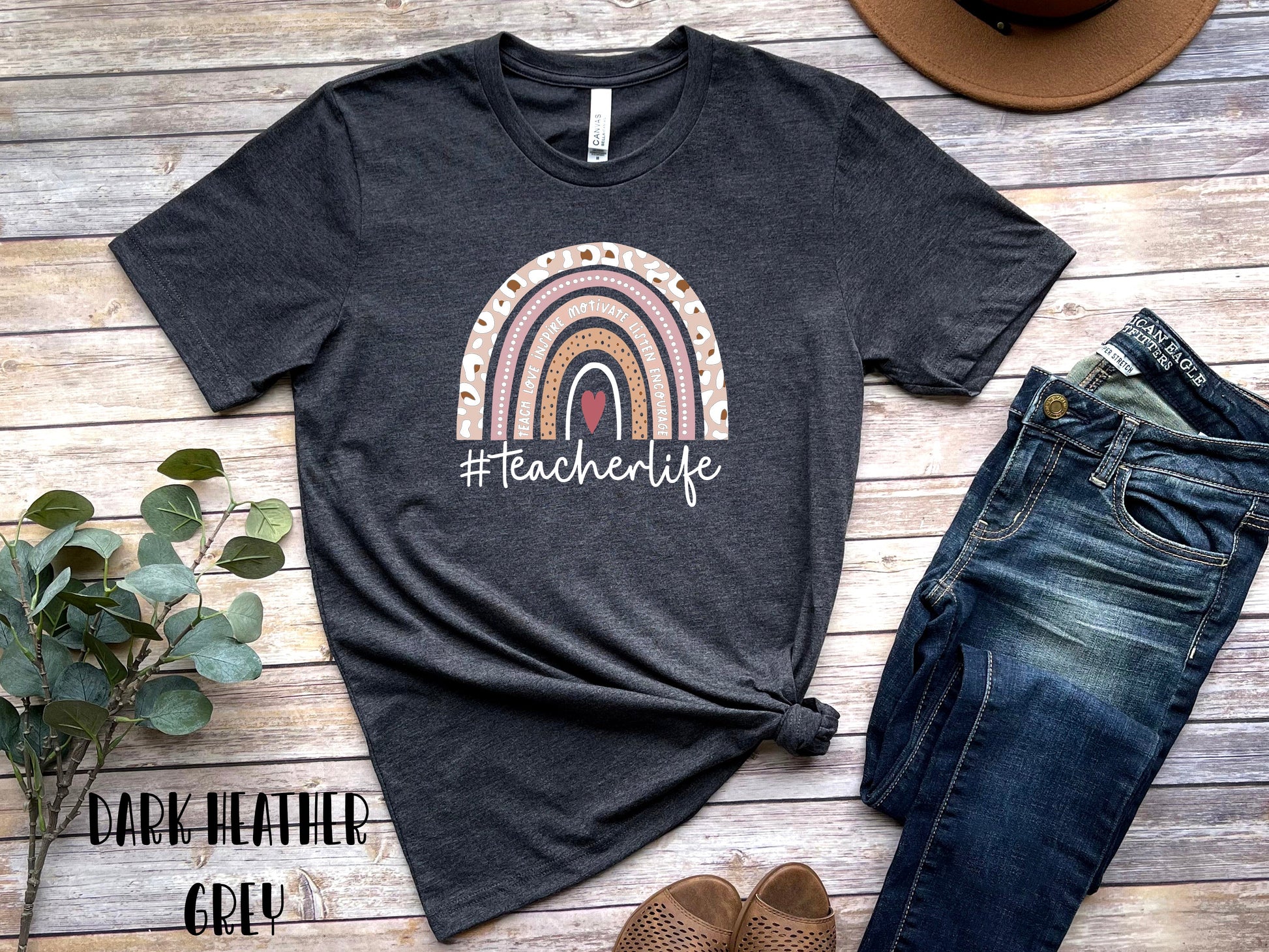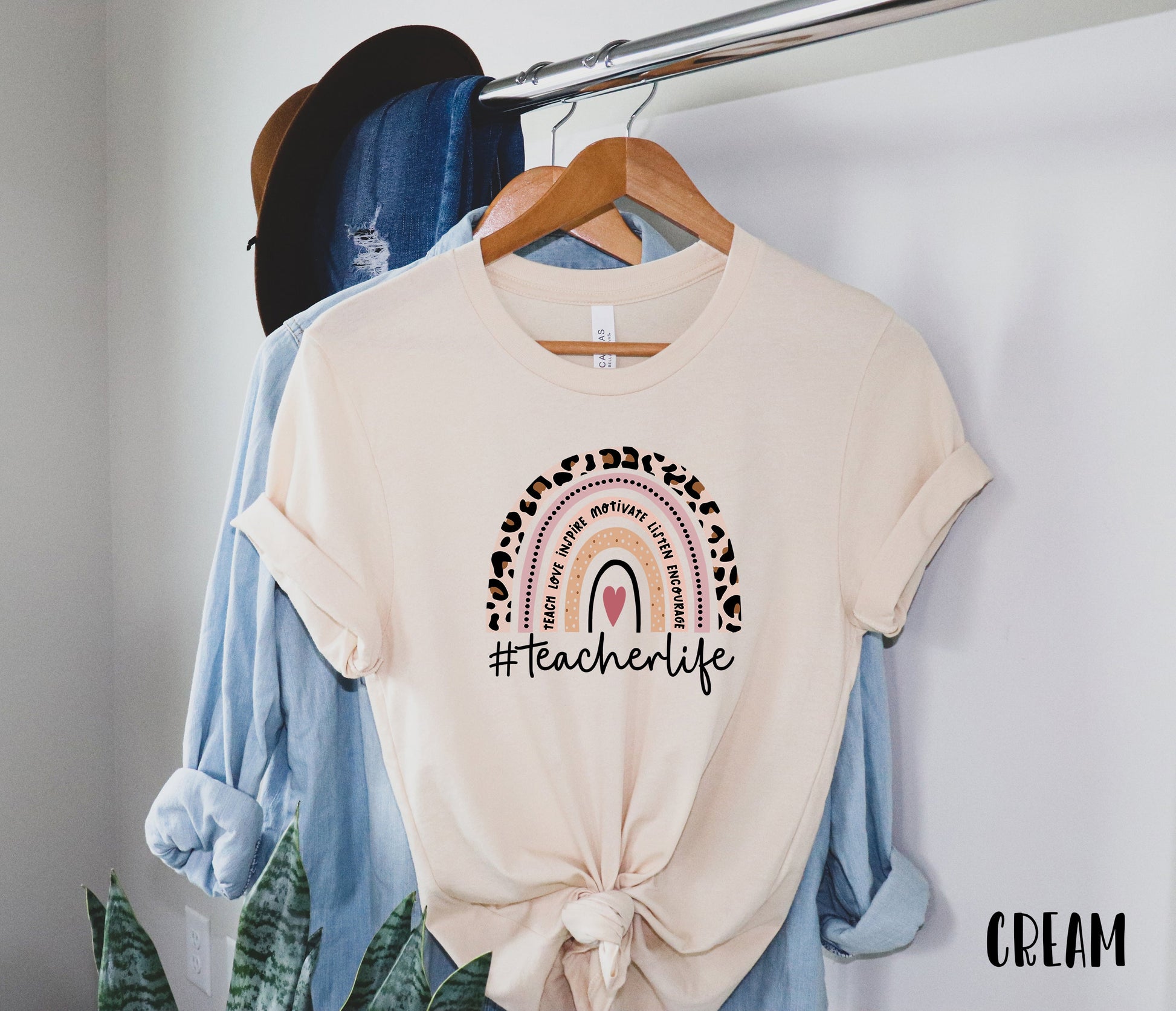 Teach Love Inspire Leopard Rainbow Short Sleeve Shirt, Teacher Life Shirt
