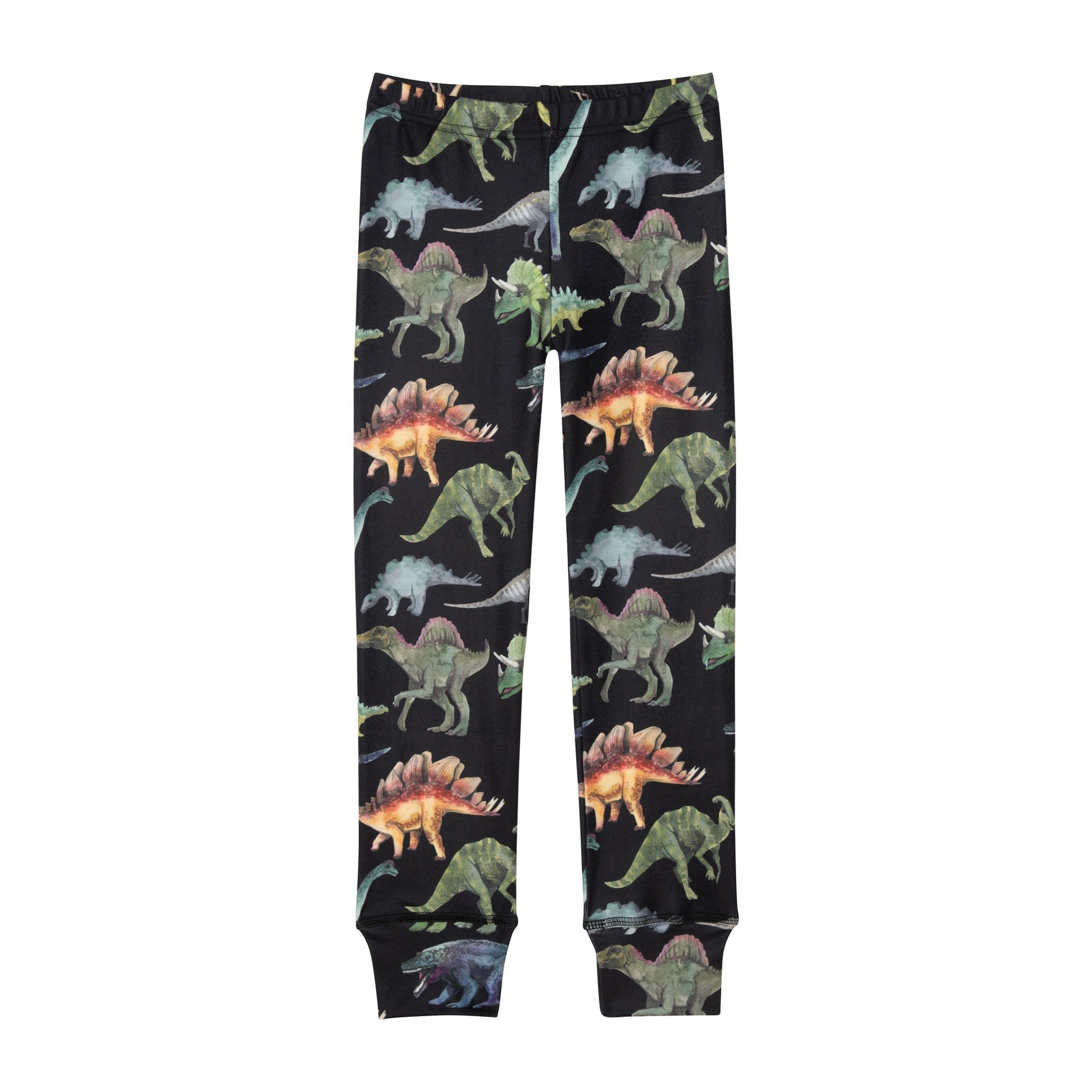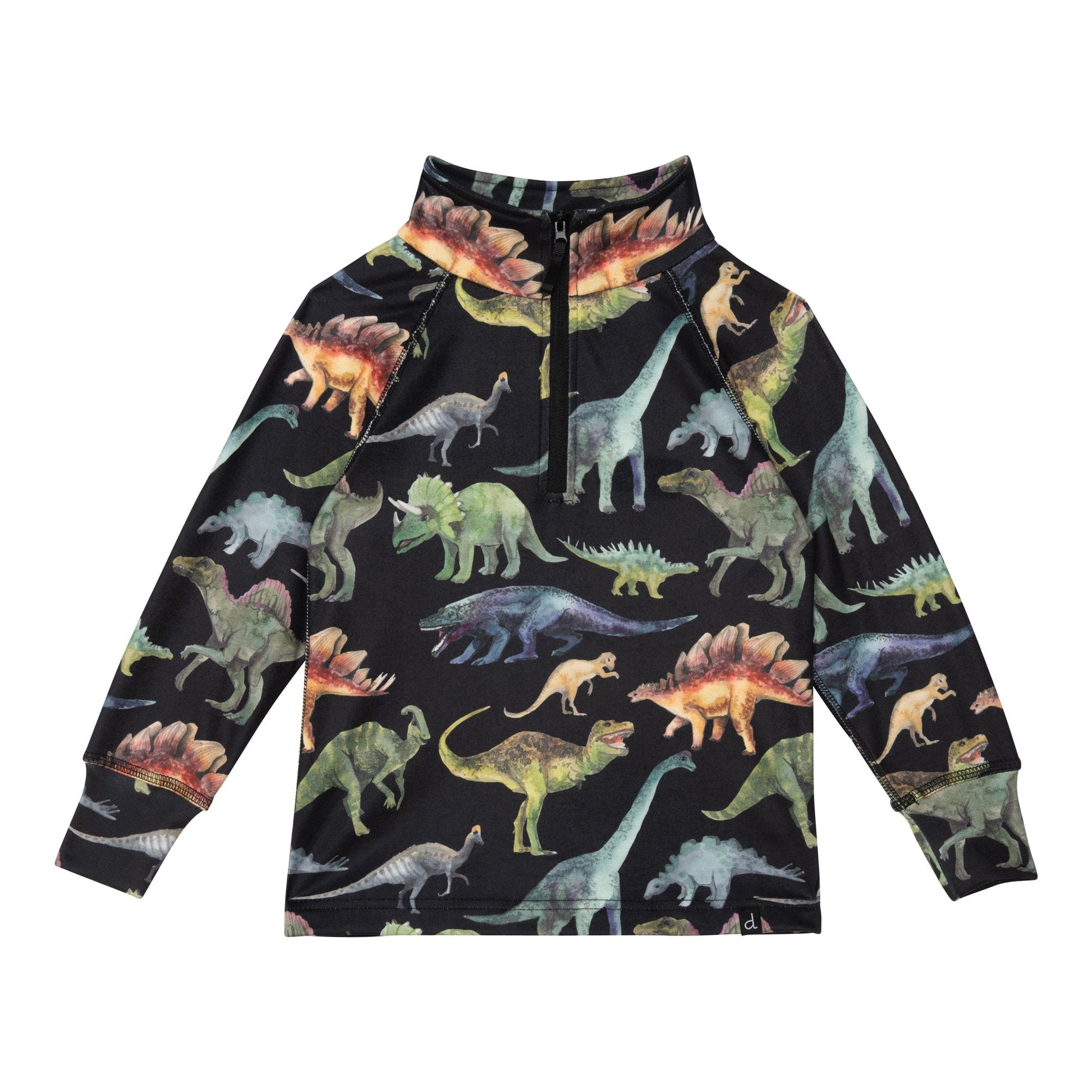 Designed for wearing on the coldest days, our Two Piece Thermal Underwear Black With Dinosaur Print serves as a comfy and cozy base layer beneath a snowsuit.