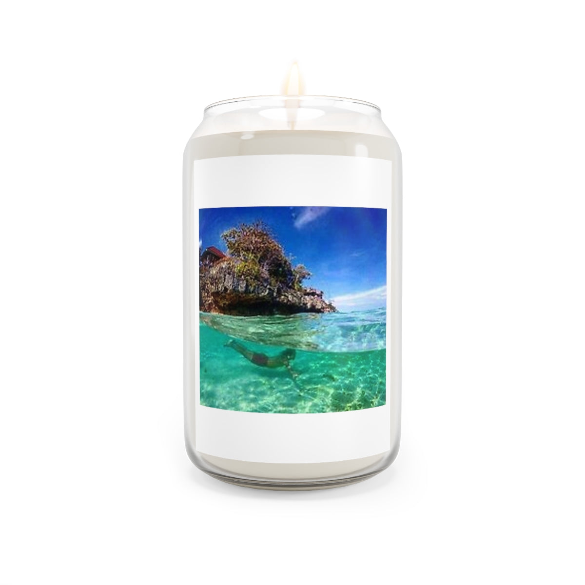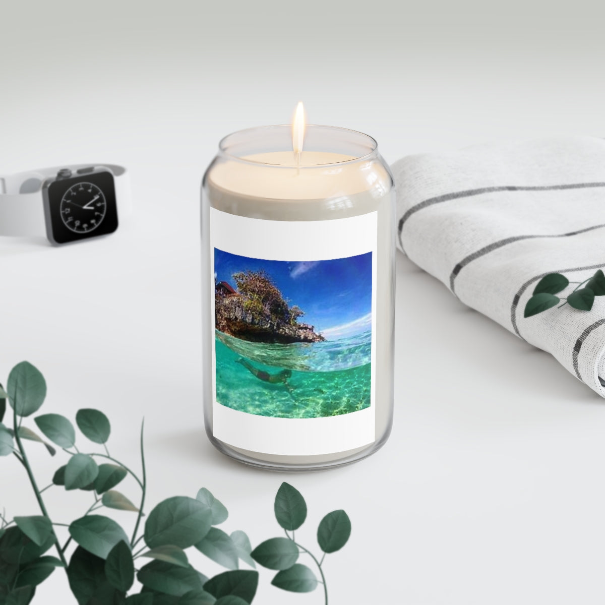 " Under Water Scenery " Design Scented Candle, 13.75oz Holiday Gift Birthday Gift Comfort Spice Scent, Sea Breeze Scent, Vanilla Bean Scent Home Decor