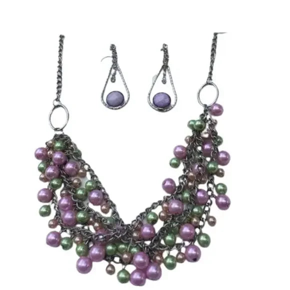 Brand new beautiful multi-beam necklace set. The colors are purple, pink peach, and lime green—women's Ladies Fashion.