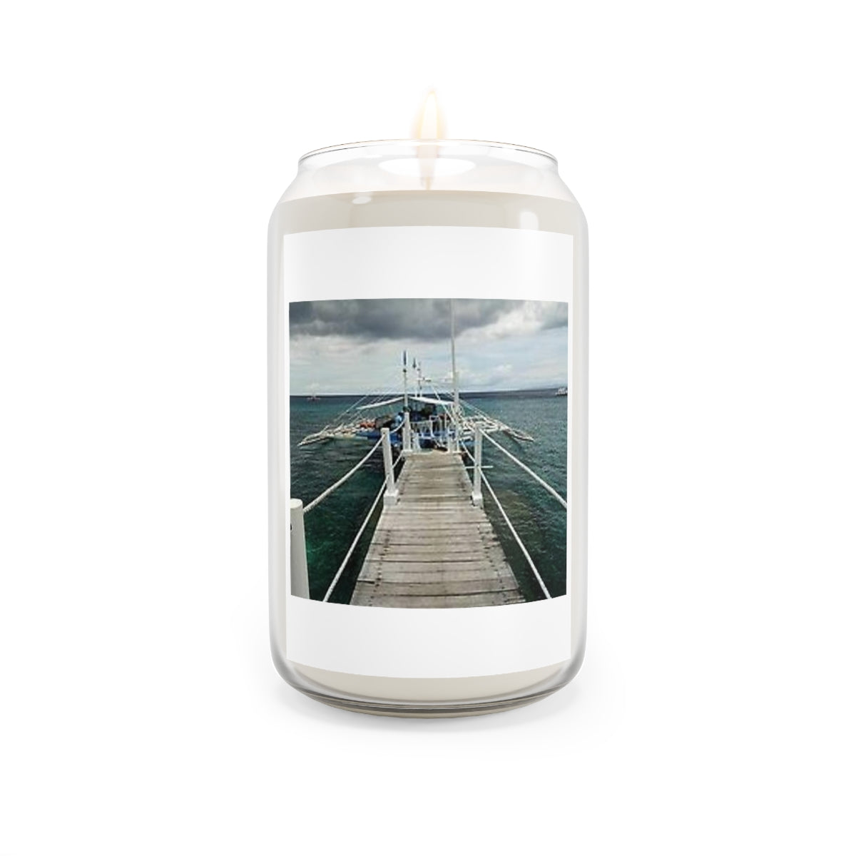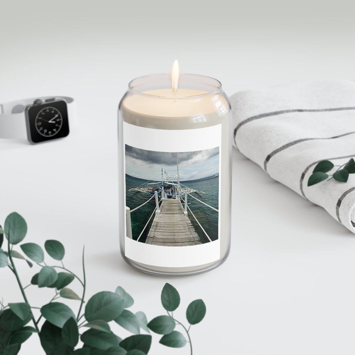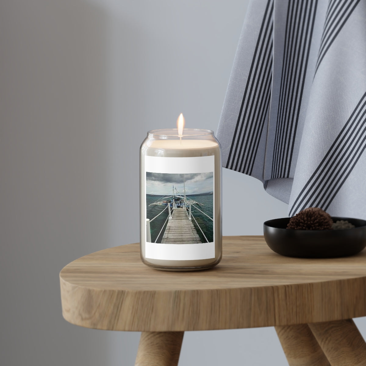 " Water Scenery " Design Scented Candle, 13.75oz Holiday Gift Birthday Gift Comfort Spice Scent, Sea Breeze Scent, Vanilla Bean Scent Home Decor