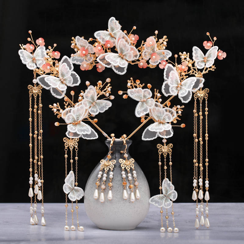 Here comes the bride! All eyes will be on you when you walk down the aisle wearing this gorgeous wedding jewelry set. This classical and feminine design is full of oriental charm and is sure to capture the joy of your heart on your special day. The different ornaments included in the set interpret different characters, so you can choose the perfect one to match your unique personality and style. Whether you're getting married, attending a formal dance, or just want to add a little extra sparkle to your look, this jewelry set is a wonderful choice. It also makes a great gift for any special woman in your life.